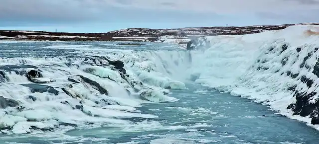 The most visited tourist attractions around the capital Reykjavik are also called the 'Golden Circle'. The Gullfoss waterfall is part of this. Gullfoss is one of the most beautiful waterfalls in the country. The water comes down in two stages. In total it collapses 32 meters down, into a gap. The beauty of the waterfall was immediately recognized by the namesake. Gullfoss is translated into 'golden waterfall' in English. When you stand at the waterfall, you see a spectacular natural phenomenon. The rugged terrain around the waterfall completes the rugged landscape. This is the real Iceland.